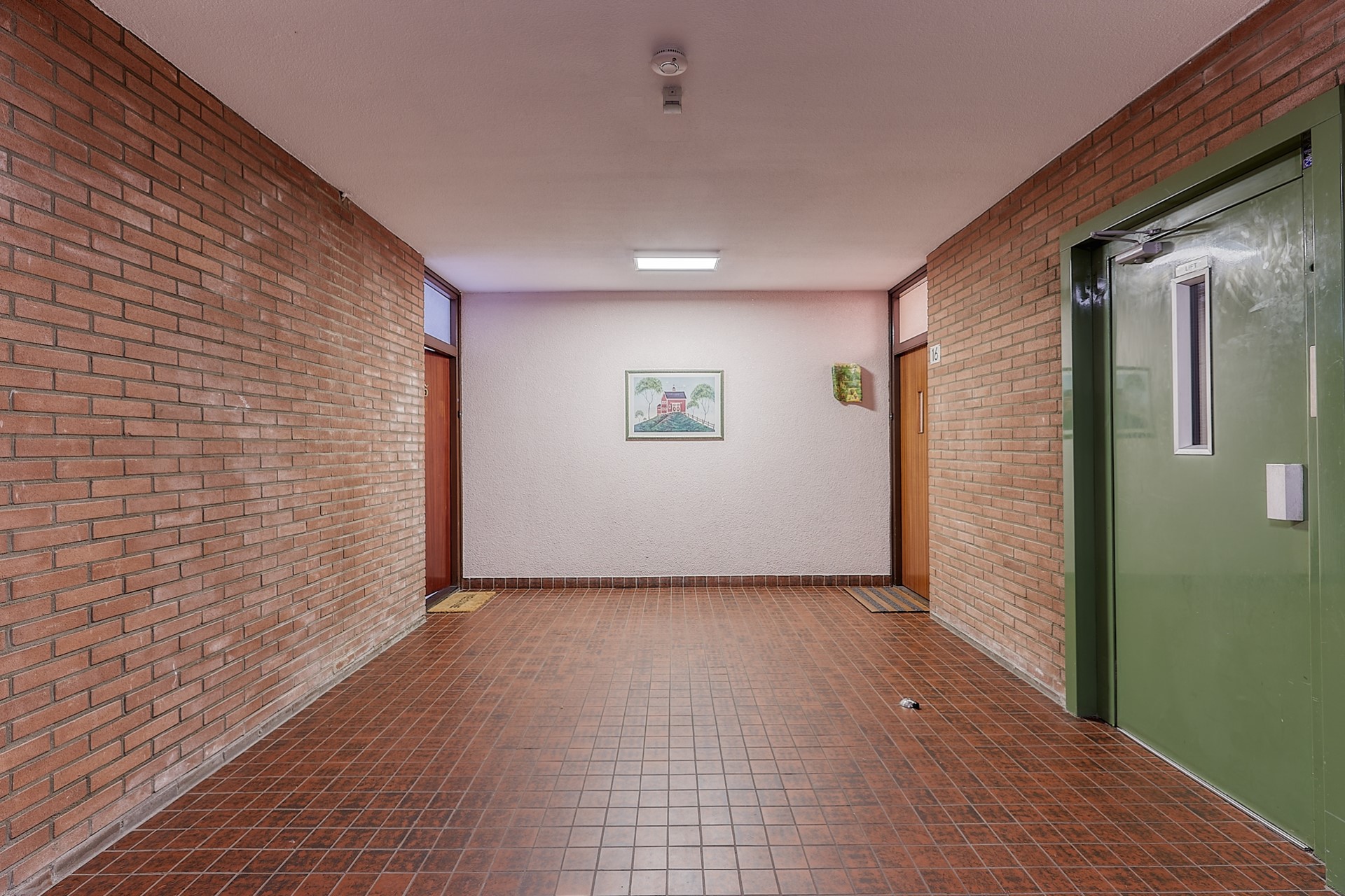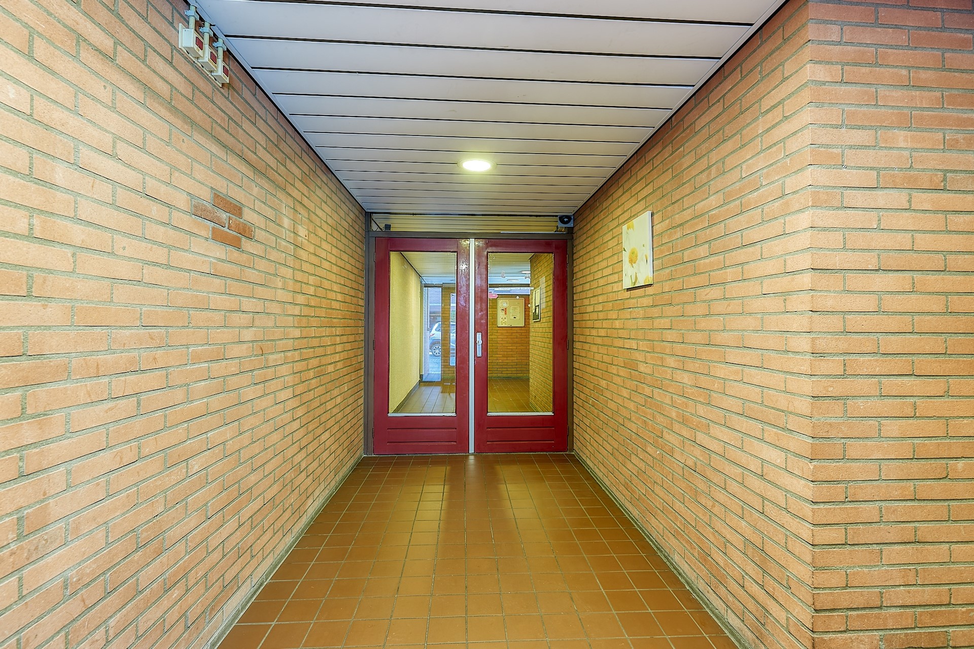 Hoofdentree met bellentableau, brievenbussen, intercom met camera, trappenhuis en lift.