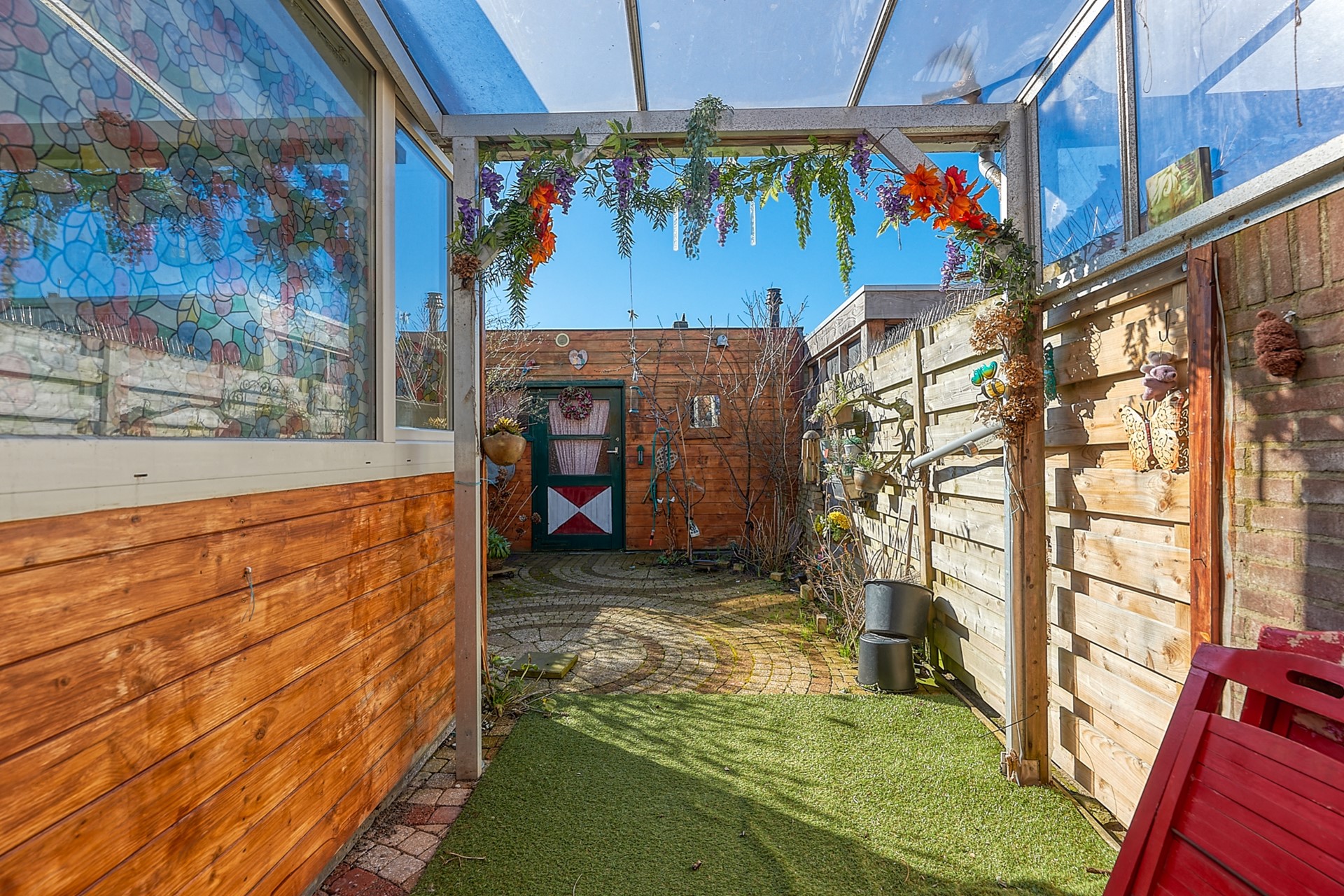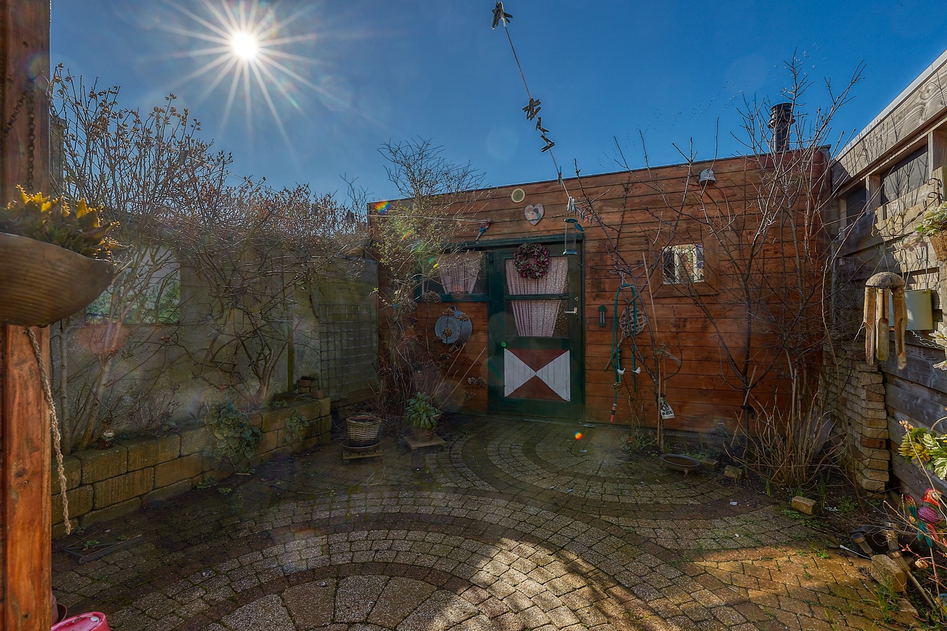 Achtertuin met schuur op het zuid/westen