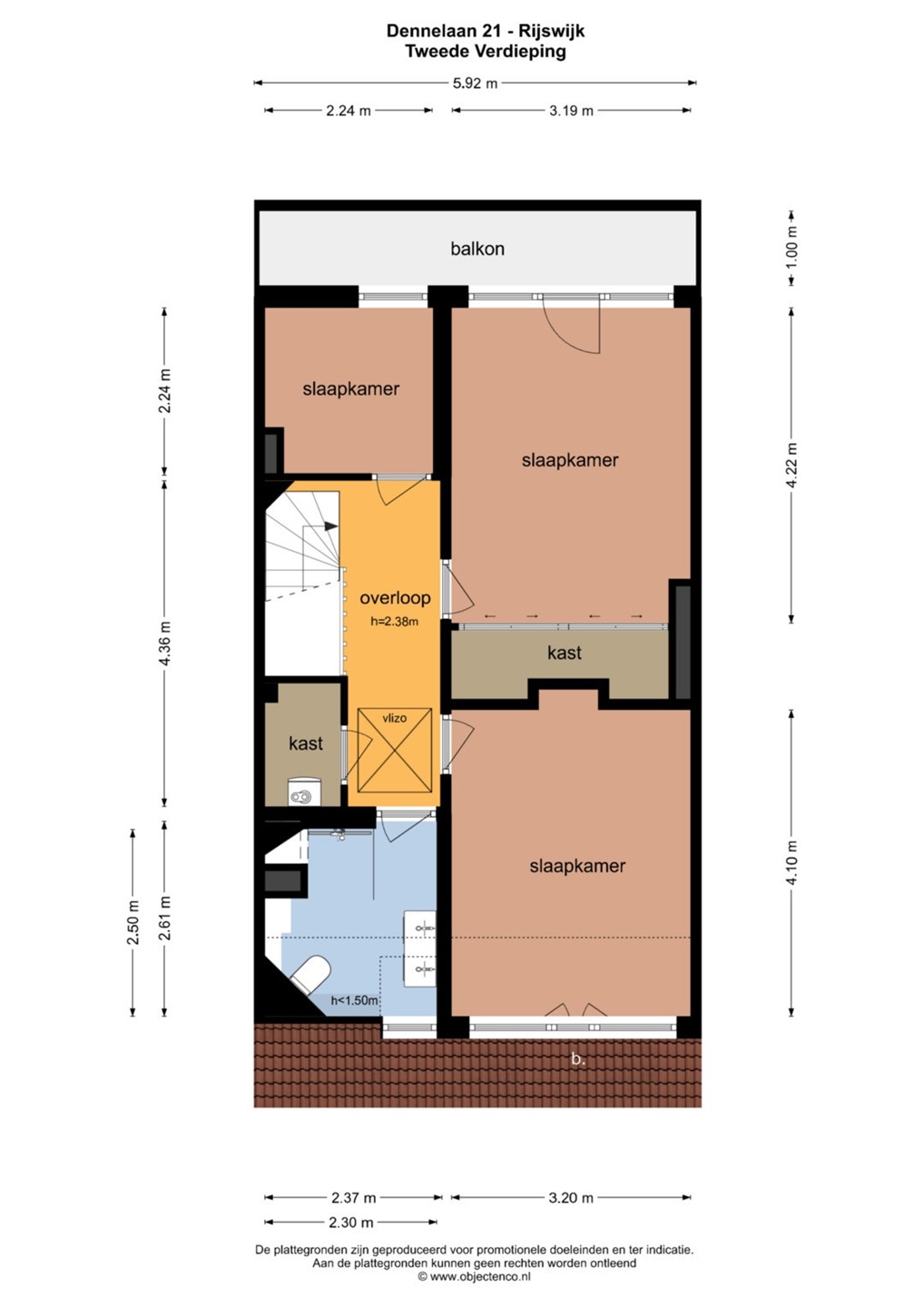 op de tweede verdieping over de volledige breedte van de woning gelegen.