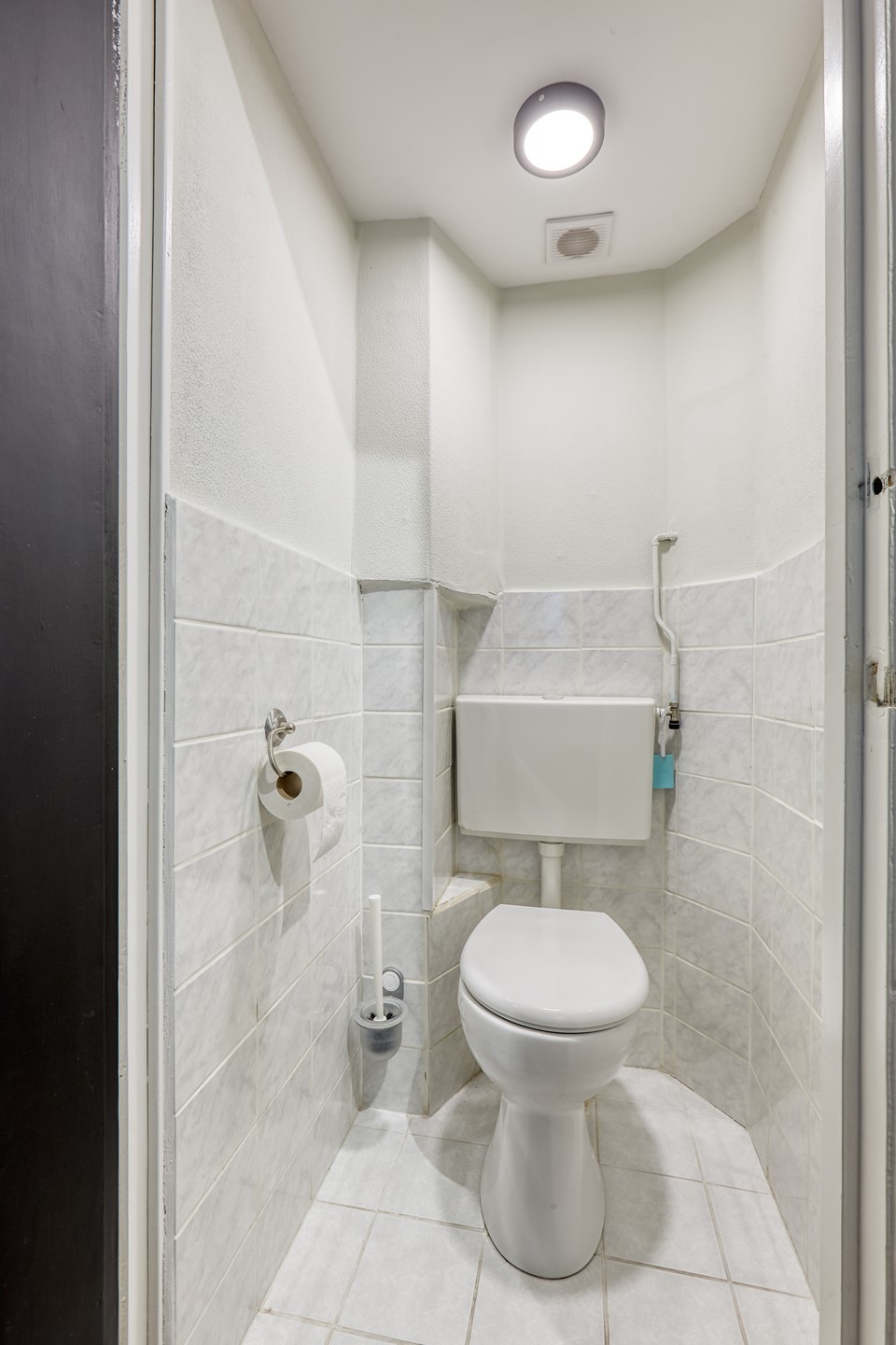 Via portiek, ingang woning middels trapopgang naar de Eerste verdieping, hal met toilet en kast, deur naar woonkamer met inbouwkast,